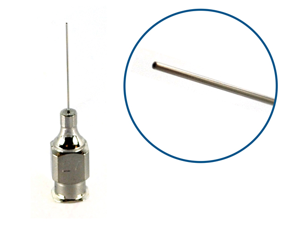 Cánulas de irrigación reutilizables Mclntyre-Binkhorst de calibre 26 con ejes angulados o rectos. La punta es una punta en...