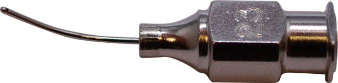 Cánulas extractoras Simcoe Cortex de calibre 23 y 25 reutilizables con ejes curvos de 13 mm y 21 mm. Las cánulas tienen puntas redondeadas cerradas con un puerto de aspiración de 0,3 mm que mira hacia el eje. Longitudes totales de 21 mm.
